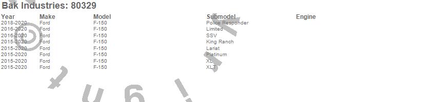 Brand: BAK IndustriesPart Number: 80329Tonneau Cover Type: Black - Vinyl Top w/ Aluminum Underside - Matte Black FinishUPC: 192631032304