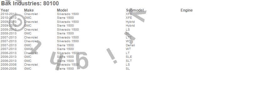 Brand: BAK IndustriesPart Number: 80100Tonneau Cover Type: Black - Vinyl Top w/ Aluminum Underside - Matte Black FinishUPC: 192631032021
