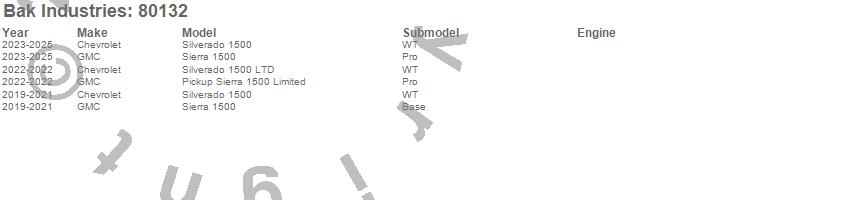 Brand: BAK IndustriesPart Number: 80132Tonneau Cover Type: Black - Vinyl Top w/ Aluminum Underside - Matte Black FinishUPC: 192631032120