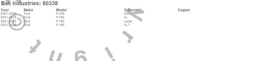 Brand: BAK IndustriesPart Number: 80338BAKTonneau Cover Type: Black - Vinyl Top w/ Aluminum Underside - Matte Black FinishUPC: 192631033349