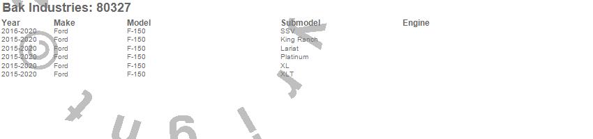 Brand: BAK IndustriesPart Number: 80327Tonneau Cover Type: Black - Vinyl Top w/ Aluminum Underside - Matte Black FinishUPC: 192631032281
