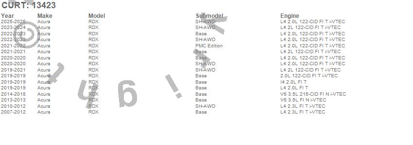 Below is an abbreviated list of applications for the Class III 2 in. Receiver Hitch.RDX, Acura, 2025, 2024, 2023, 2022, 2021, 2020, 2019