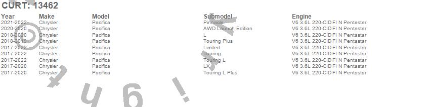 Below is an abbreviated list of applications for the Class III 2 in. Receiver Hitch.Pacifica, Chrysler, 2022, 2021, 2020, 2019, 2018, 2017