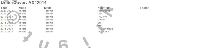 Brand: UnderCoverPart Number: AX42014Tonneau Cover Type: Black TexturedUPC: 816391026723