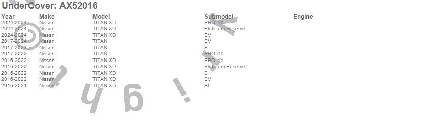 Below is an abbreviated list of applications for the Armor Flex Tonneau Cover.TITAN, TITAN XD, Nissan, 2024, 2023, 2022, 2021, 2020, 2019, 2018, 2017, 2016