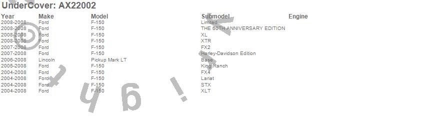Below is an abbreviated list of applications for the Armor Flex Tonneau Cover.F-150, Mark LT, Ford, Lincoln, 2008, 2007, 2006, 2005, 2004