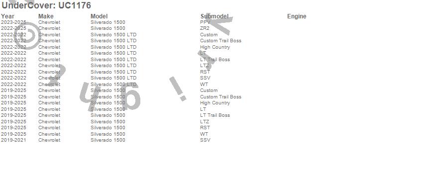 Brand: UnderCoverPart Number: UC1176Tonneau Cover Type: Black TexturedUPC: 192631028918