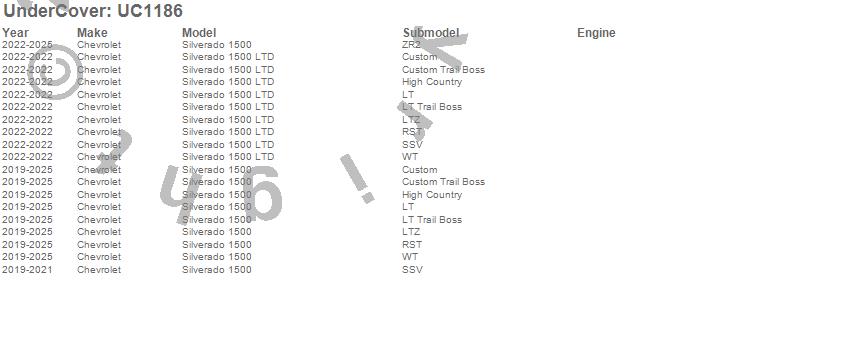 Brand: UnderCoverPart Number: UC1186Tonneau Cover Type: Black TexturedUPC: 192631029076