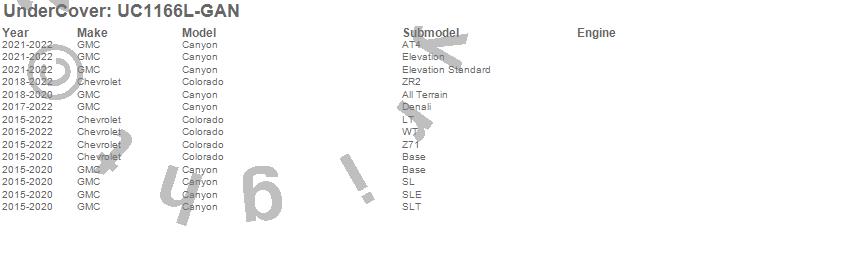 Below is an abbreviated list of applications for the LUX Tonneau Cover.Canyon, Colorado, Chevrolet, GMC, 2022, 2021, 2020, 2019, 2018, 2017, 2016, 2015