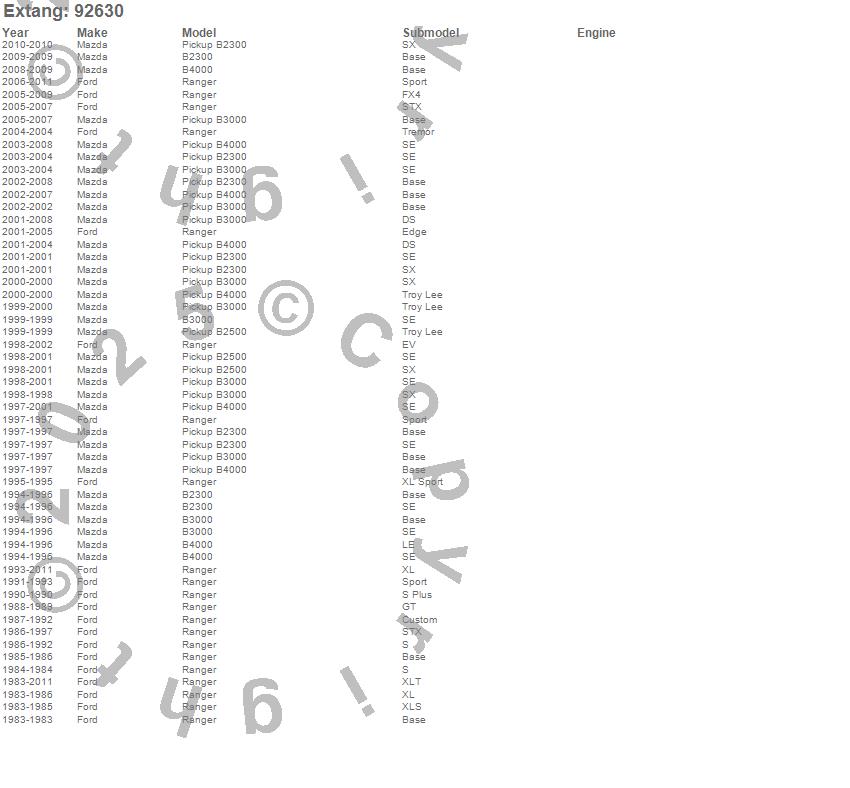 Below is an abbreviated list of applications for the Trifecta 2.0 Tonneau Cover.B2300, B2500, B3000, B4000, Ranger, Ford, Mazda, 2011, 2010, 2009, 2008, 2007, 2006, 2005, 2004, 2003, 2002, 2001, 2000, 1999