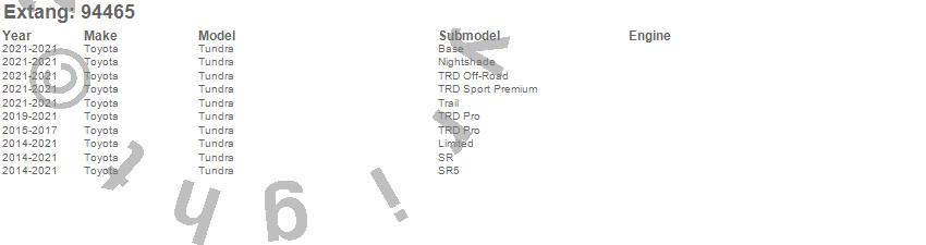 Brand: ExtangPart Number: 94465Tonneau Cover Type: Black - Acrylic Canvas - w/o Cargo Channel SystemUPC: 750289944655