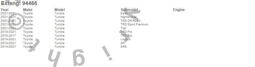 Brand: ExtangPart Number: 94466Tonneau Cover Type: Acrylic Canvas - Black - w/Cargo Channel SystemUPC: 750289944662