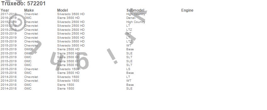 Below is an abbreviated list of applications for the TruXedo Lo Pro QT Tonneau Cover.Sierra 1500, Sierra 2500 HD, Sierra 3500 HD, Silverado 1500, Silverado 2500 HD, Silverado 3500 HD, Chevrolet, GMC, 2019, 2018, 2017, 2016, 2015, 2014