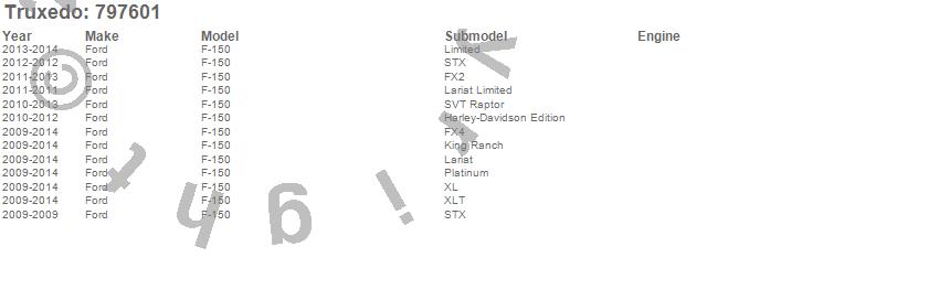 Below is an abbreviated list of applications for the TruXedo Deuce Tonneau Cover.F-150, Ford, 2014, 2013, 2012, 2011, 2010, 2009