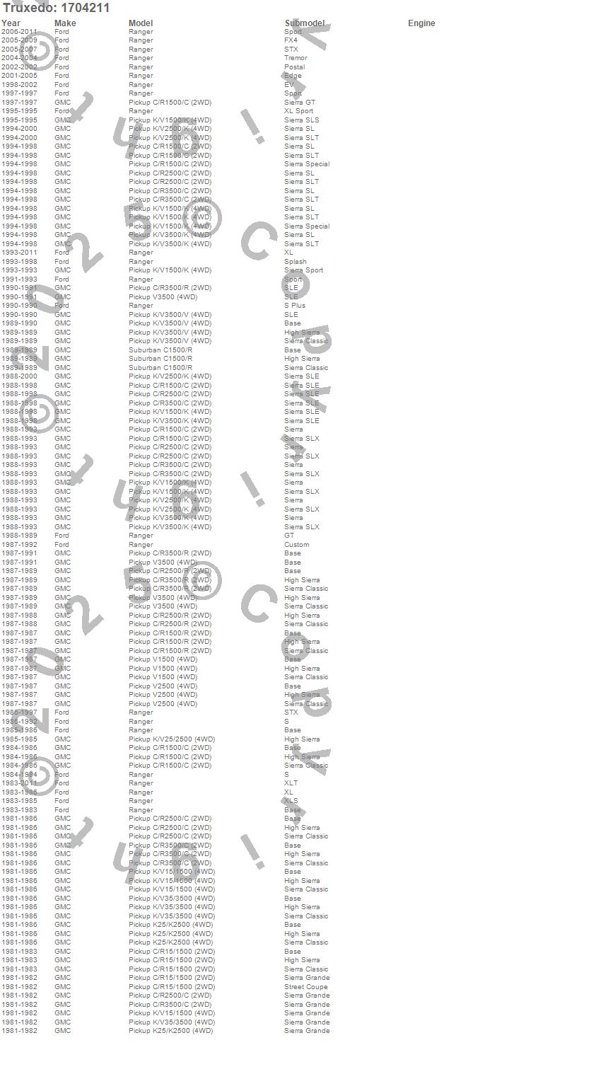 Below is an abbreviated list of applications for the Stake Pocket Covers.C1500 Pickup, C2500 Pickup, C3500 Pickup, K1500, K1500 Pickup, K2500 Pickup, K3500 Pickup, R1500 Pickup, R2500 Pickup, R3500 Pickup, Ranger, V1500 Pickup, V2500 Pickup, V3500 Pickup, Ford, GMC, 2011, 2010, 2009, 2008
