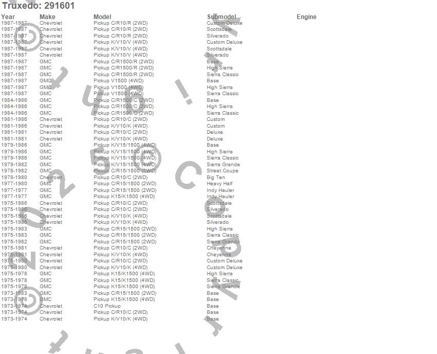 Below is an abbreviated list of applications for the TruXport Tonneau Cover.C10 Pickup, C1500 Pickup, K10 Pickup, K1500 Pickup, R10 Pickup, R1500 Pickup, V10 Pickup, V1500 Pickup, Chevrolet, GMC, 1987, 1986, 1985, 1984, 1983, 1982, 1981, 1980, 1979, 1978
