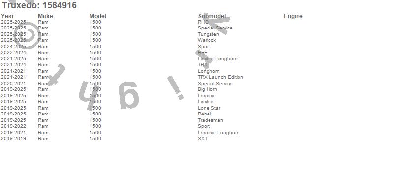 Brand: TruxedoPart Number: 1584916Tonneau Cover Type: Black - w/Ram BoxUPC: 845742012764