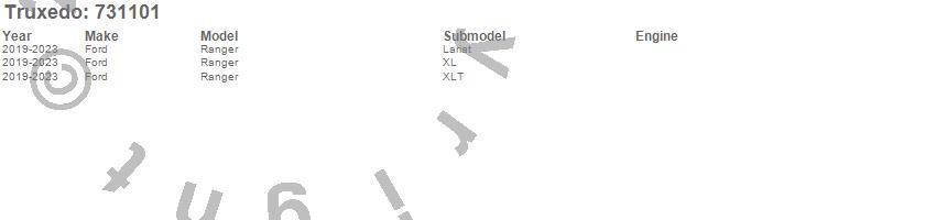 Brand: TruxedoPart Number: 731101Tonneau Cover Type: BlackUPC: 845742015499