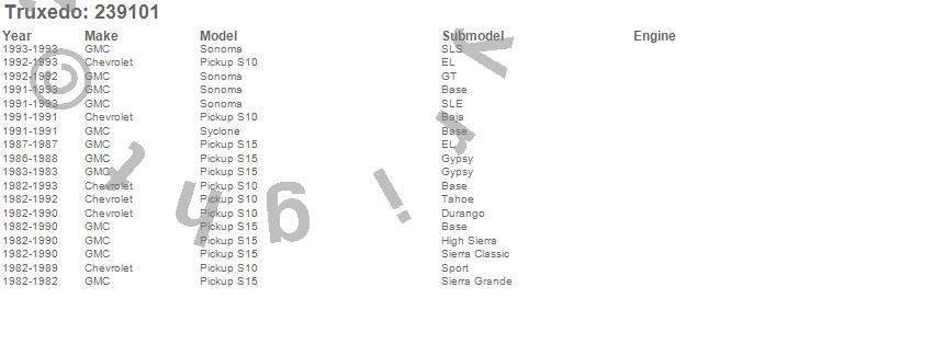 Below is an abbreviated list of applications for the TruXport Tonneau Cover.S10 Pickup, S15 Pickup, Sonoma, Syclone, Chevrolet, GMC, 1993, 1992, 1991, 1990, 1989, 1988, 1987, 1986, 1985, 1984, 1983, 1982