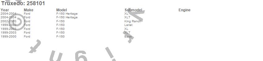 Below is an abbreviated list of applications for the TruXport Tonneau Cover.F-150, F-150 Heritage, Ford, 2004, 2003, 2002, 2001, 2000, 1999