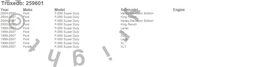 Below is an abbreviated list of applications for the TruXport Tonneau Cover.F-250 Super Duty, F-350 Super Duty, Ford, 2007, 2006, 2005, 2004, 2003, 2002, 2001, 2000, 1999