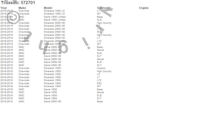 Below is an abbreviated list of applications for the TruXedo Lo Pro QT Tonneau Cover.Sierra 1500, Sierra 1500 Limited, Sierra 2500 HD, Sierra 3500 HD, Silverado 1500, Silverado 1500 LD, Silverado 2500 HD, Silverado 3500 HD, Chevrolet, GMC, 2019, 2018, 2017, 2016