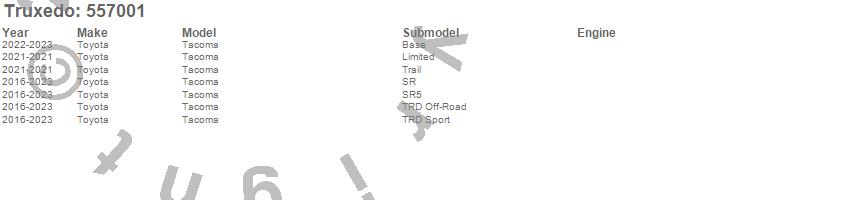 Brand: TruxedoPart Number: 557001Tonneau Cover Type: BlackUPC: 845742006862