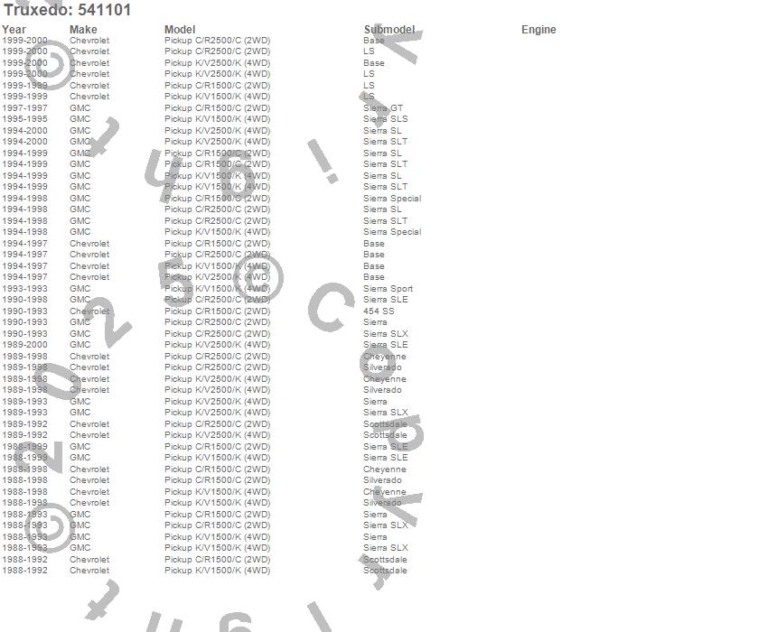 Below is an abbreviated list of applications for the TruXedo Lo Pro QT Tonneau Cover.C1500 Pickup, C2500 Pickup, K1500, K1500 Pickup, K2500 Pickup, Chevrolet, GMC, 2000, 1999, 1998, 1997, 1996, 1995, 1994, 1993, 1992, 1991, 1990, 1989, 1988