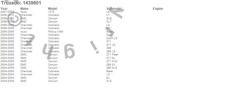 Below is an abbreviated list of applications for the Pro X15 Tonneau Cover.Canyon, Colorado, i-350, i-370, Chevrolet, GMC, Isuzu, 2012, 2011, 2010, 2009, 2008, 2007, 2006, 2005, 2004