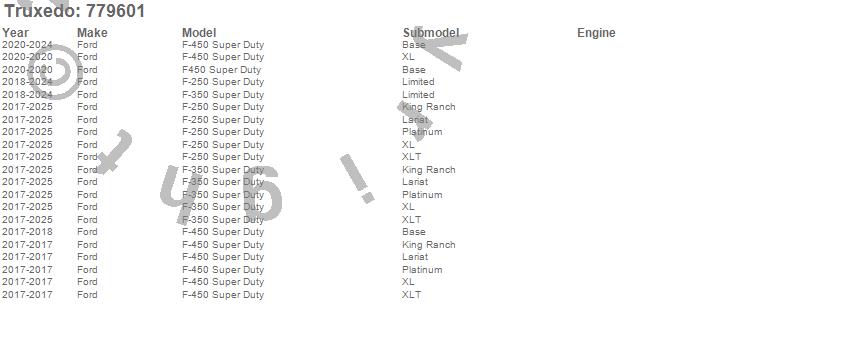 Below is an abbreviated list of applications for the TruXedo Deuce Tonneau Cover.F-250 Super Duty, F-350 Super Duty, F-450 Super Duty, F450 Super Duty, Ford, 2025, 2024, 2023, 2022, 2021, 2020, 2019, 2018, 2017