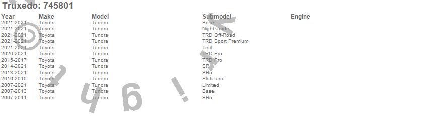Below is an abbreviated list of applications for the TruXedo Deuce Tonneau Cover.Tundra, Toyota, 2021, 2020, 2019, 2018, 2017, 2016, 2015, 2014, 2013, 2012, 2011, 2010, 2009, 2008, 2007