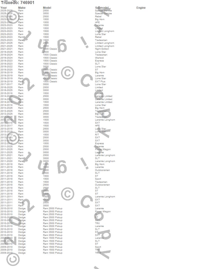 Below is an abbreviated list of applications for the TruXedo Deuce Tonneau Cover.1500, 1500 Classic, 2500, 3500, Ram 1500, Ram 2500, Ram 3500, Dodge, Ram, 2025, 2024, 2023, 2022, 2021, 2020, 2019, 2018, 2017, 2016, 2015