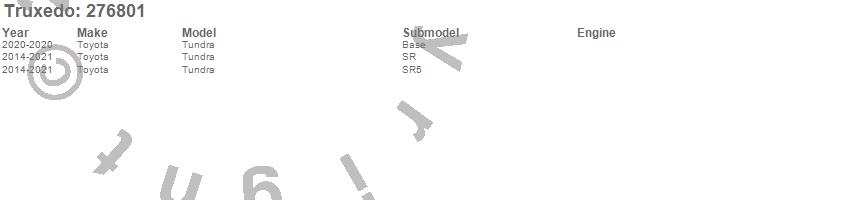 Below is an abbreviated list of applications for the TruXport Tonneau Cover.Tundra, Toyota, 2021, 2020, 2019, 2018, 2017, 2016, 2015, 2014
