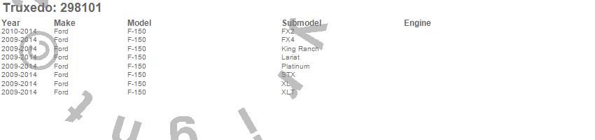 Below is an abbreviated list of applications for the TruXport Tonneau Cover.F-150, Ford, 2014, 2013, 2012, 2011, 2010, 2009