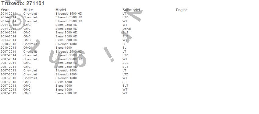 Below is an abbreviated list of applications for the TruXport Tonneau Cover.Sierra 1500, Sierra 2500 HD, Sierra 3500 HD, Silverado 1500, Silverado 2500 HD, Silverado 3500 HD, Chevrolet, GMC, 2014, 2013, 2012, 2011, 2010, 2009, 2008, 2007