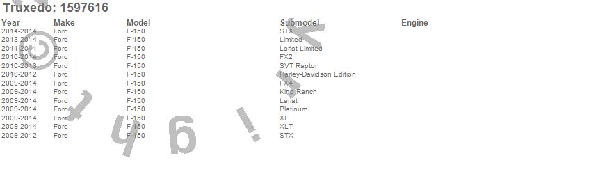Below is an abbreviated list of applications for the Truxedo Sentry CT Tonneau Cover.F-150, Ford, 2014, 2013, 2012, 2011, 2010, 2009