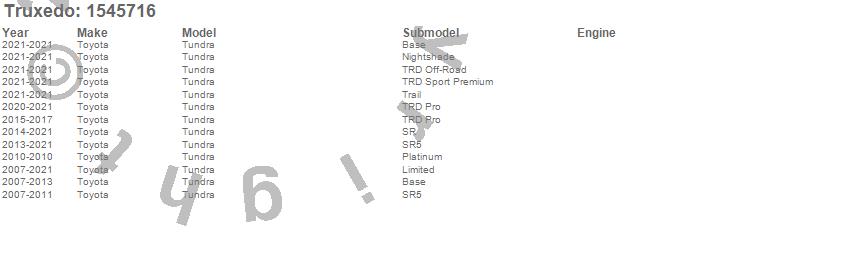 Below is an abbreviated list of applications for the Truxedo Sentry CT Tonneau Cover.Tundra, Toyota, 2021, 2020, 2019, 2018, 2017, 2016, 2015, 2014, 2013, 2012, 2011, 2010, 2009, 2008, 2007