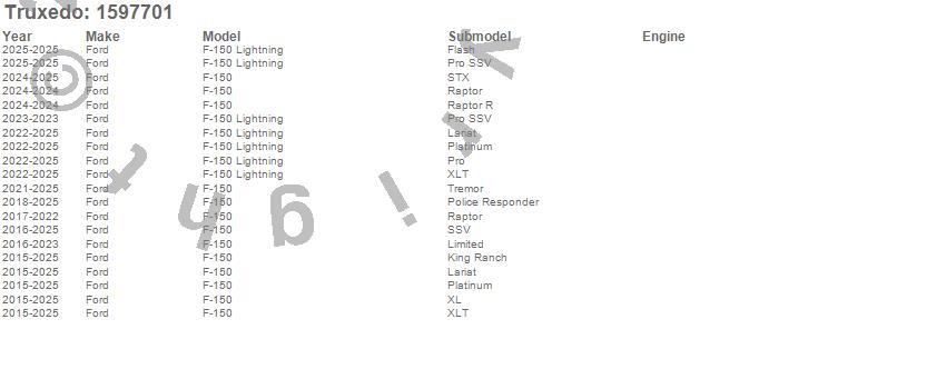 Below is an abbreviated list of applications for the Truxedo Sentry Tonneau Cover.F-150, F-150 Lightning, Ford, 2026, 2025, 2024, 2023, 2022, 2021, 2020, 2019, 2018, 2017, 2016, 2015