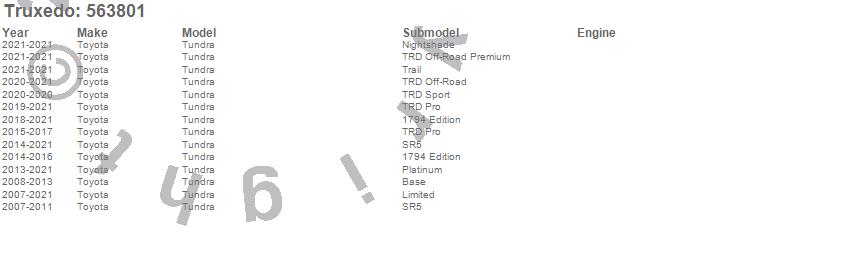 Below is an abbreviated list of applications for the TruXedo Lo Pro QT Tonneau Cover.Tundra, Toyota, 2021, 2020, 2019, 2018, 2017, 2016, 2015, 2014, 2013, 2012, 2011, 2010, 2009, 2008, 2007