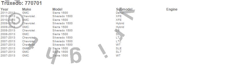 Below is an abbreviated list of applications for the TruXedo Deuce Tonneau Cover.Sierra 1500, Silverado 1500, Chevrolet, GMC, 2013, 2012, 2011, 2010, 2009, 2008, 2007