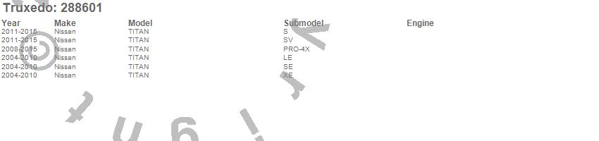 Below is an abbreviated list of applications for the TruXport Tonneau Cover.TITAN, Nissan, 2015, 2014, 2013, 2012, 2011, 2010, 2009, 2008, 2007, 2006, 2005, 2004