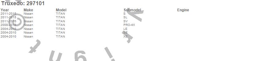 Below is an abbreviated list of applications for the TruXport Tonneau Cover.TITAN, Nissan, 2015, 2014, 2013, 2012, 2011, 2010, 2009, 2008, 2007, 2006, 2005, 2004