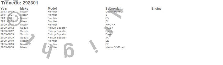 Below is an abbreviated list of applications for the TruXport Tonneau Cover.Equator, Frontier, Nissan, Suzuki, 2021, 2020, 2019, 2018, 2017, 2016, 2015, 2014, 2013, 2012, 2011, 2010, 2009, 2008, 2007, 2006