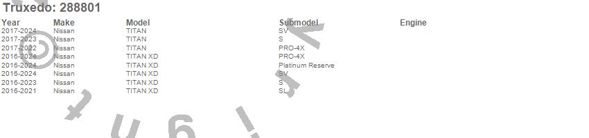 Below is an abbreviated list of applications for the TruXport Tonneau Cover.TITAN, TITAN XD, Nissan, 2024, 2023, 2022, 2021, 2020, 2019, 2018, 2017, 2016