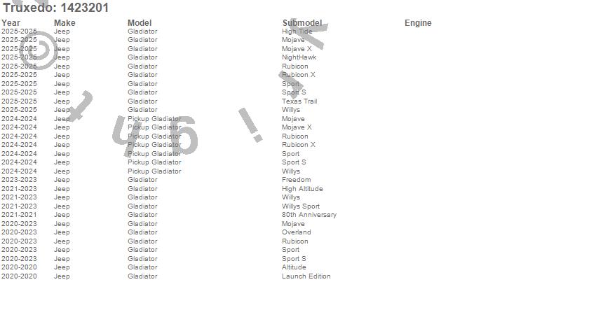 Below is an abbreviated list of applications for the Pro X15 Tonneau Cover.Gladiator, Pickup Gladiator, Jeep, 2026, 2025, 2024, 2023, 2022, 2021, 2020