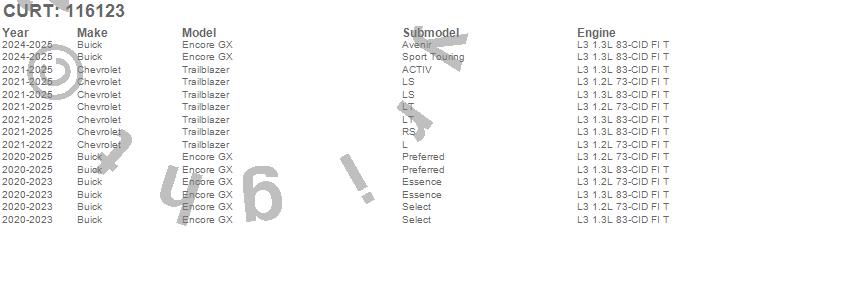 Below is an abbreviated list of applications for the Class I 1.25 in. Receiver Hitch.Encore GX, Trailblazer, Buick, Chevrolet, 2026, 2025, 2024, 2023, 2022, 2021, 2020