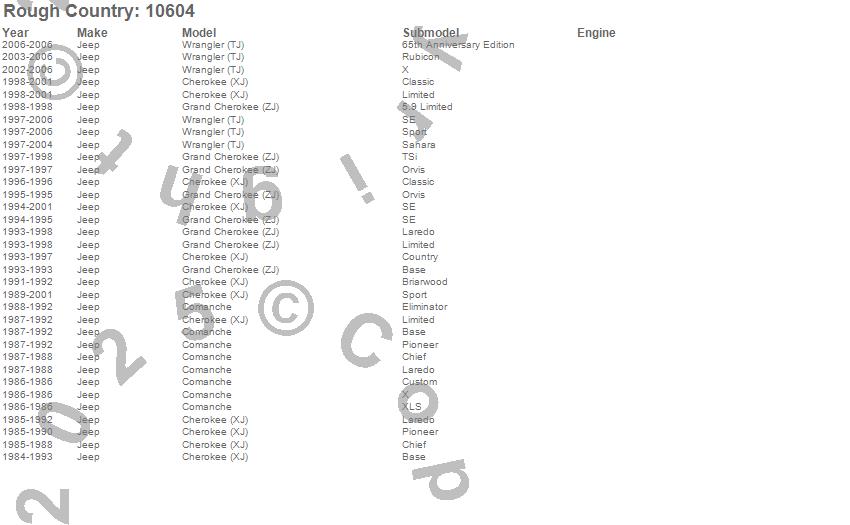 Below is an abbreviated list of applications for the Steering Upgrade Kit.Cherokee (XJ), Comanche, Grand Cherokee (ZJ), Wrangler (TJ), Jeep, 2006, 2005, 2004, 2003, 2002, 2001, 2000, 1999, 1998, 1997, 1996, 1995, 1994, 1993, 1992