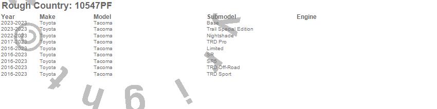 Below is an abbreviated list of applications for the Cold Air Intake.Tacoma, Toyota, 2023, 2022, 2021, 2020, 2019, 2018, 2017, 2016