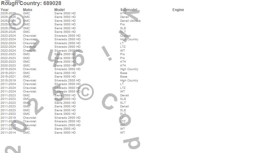 Below is an abbreviated list of applications for the Adjustable Vertex Coilovers.Sierra 2500 HD, Sierra 3500 HD, Silverado 2500 HD, Silverado 3500 HD, Chevrolet, GMC, 2025, 2024, 2023, 2022, 2021, 2020, 2019, 2018, 2017, 2016, 2015, 2014, 2013, 2012