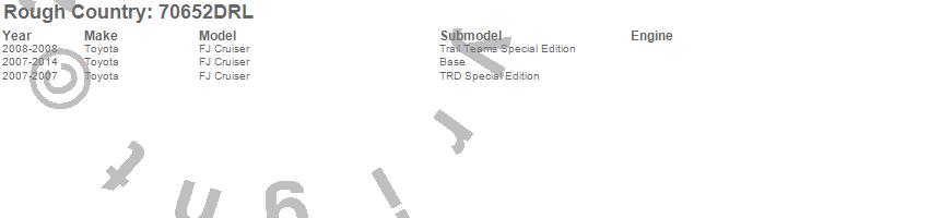 Below is an abbreviated list of applications for the LED Bumper Kit.FJ Cruiser, Toyota, 2014, 2013, 2012, 2011, 2010, 2009, 2008, 2007